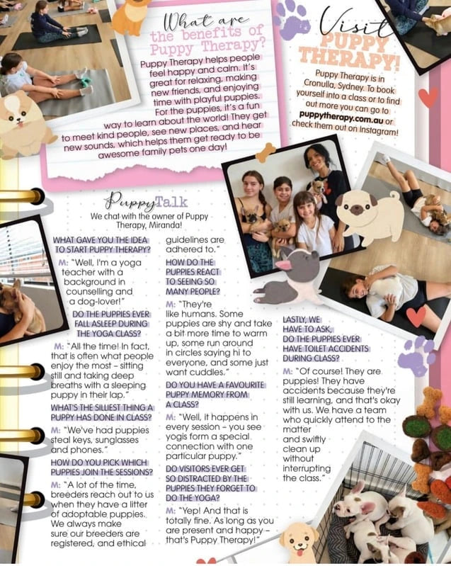 Puppy Therapy was created by Miranda - a yoga teacher and counsellor with a passion for accessible movement, genuine connection, joyful experiences and, of course, puppies! Combining a love of movement with the undeniable magic of spending time with dogs, Puppy Therapy brings people together in a warm and welcoming environment.